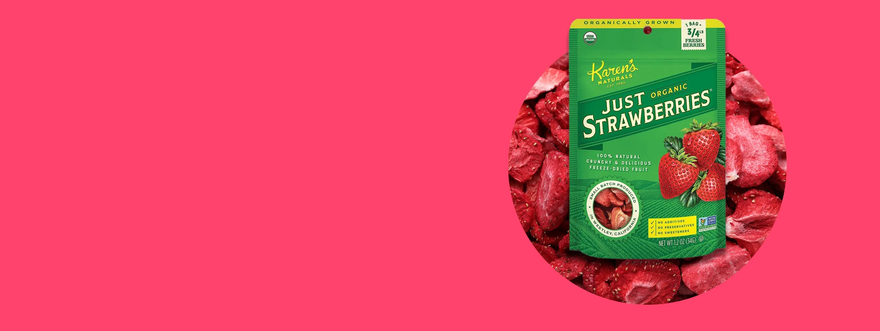 These Organic Strawberries capture the essence of summertime in a delightfully crunchy treat. Preserving both flavor and nutrients, they are a convenient way to enjoy the sweetness of strawberries year round. Sprinkle on yogurt, cottage cheese, salads, and cereal, or mix into smoothies, pancakes, or baked goods. Excellent source of vitamin C, manganese, fiber, antioxidants and anti-inflammatory heart-protective properties. Freeze-dried product.