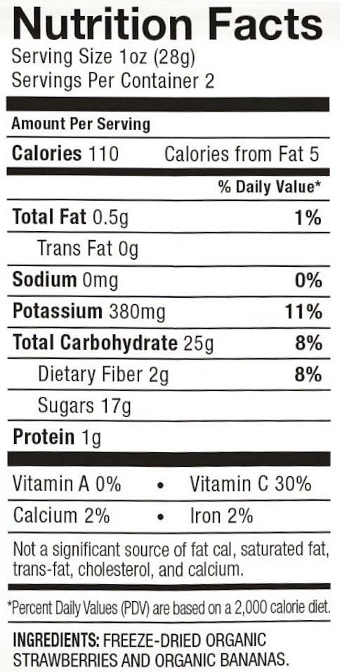 The classic combination of sweet organic freeze-dried Strawberries and ripe Organic Bananas — perfectly crisp and naturally delicious.