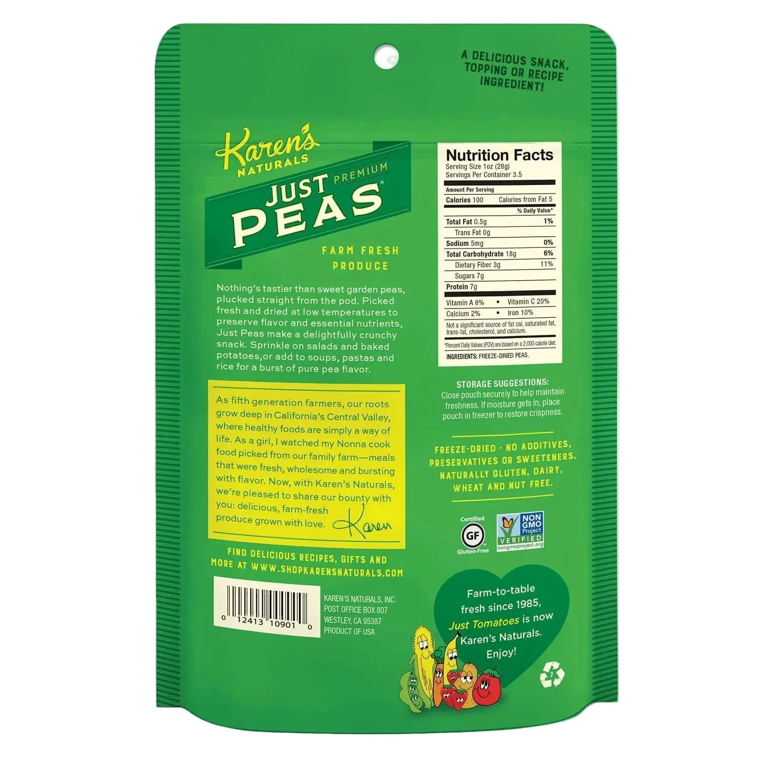 Light, crisp, and naturally flavorful, our peas make a satisfying crunchy snack straight from the bag. Sprinkle them over salads and baked potatoes, or stir into soups, pasta, and rice dishes for added texture and bright pea flavor. Their versatility makes them an easy addition to everyday meals.